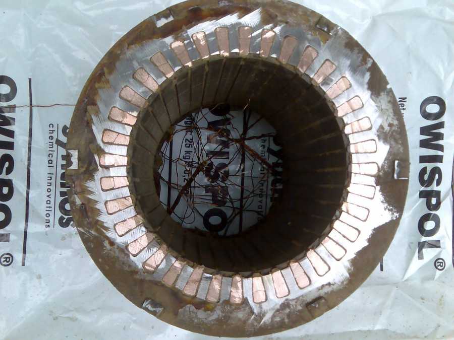 Перед началом ремонта и перемотки статор нужно очистить от грязи и удалить из пазов старую обмотку. Эта работа делается с помощью стальных щеток. Кроме того, удаляется поврежденная изоляция. Для облегчения очистки от изоляции статор опускают в нагретое трансформаторное масло, которое размягчает оставшуюся изоляцию.