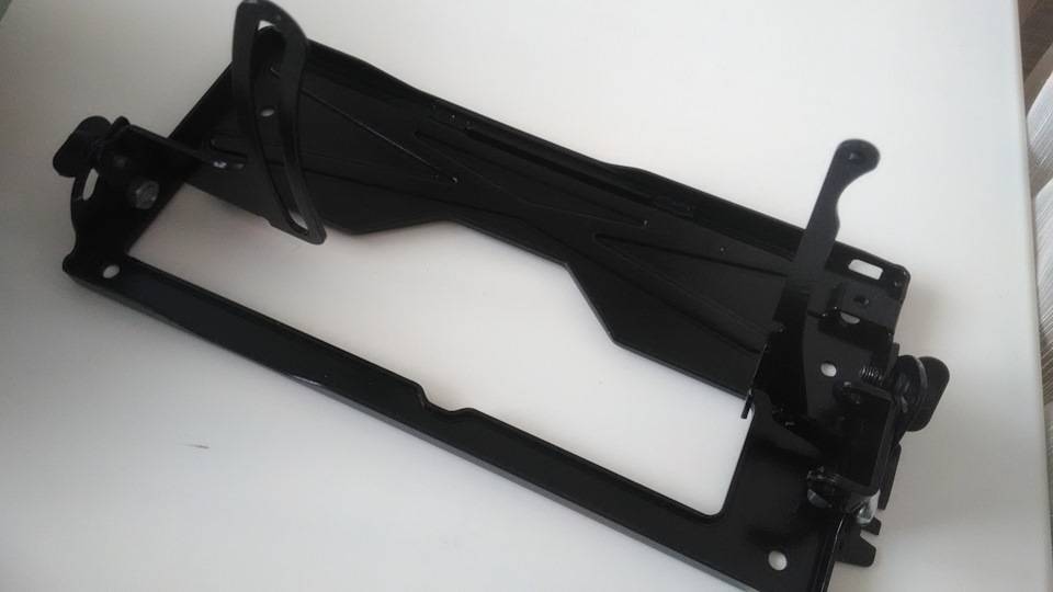 Раму, механизмы изменения угла пиления и вылета диска зашкуриваем, обезжириваем и красим в заводской черный цвет. После сушки производим сборку. Теперь в указанных выше узлах я убрал паразитные люфты, пил будет точный, а регулировка с фиксацией четкая. На очереди электро часть, редуктор, алюминиевые кожухи и пластик корпуса пилы.