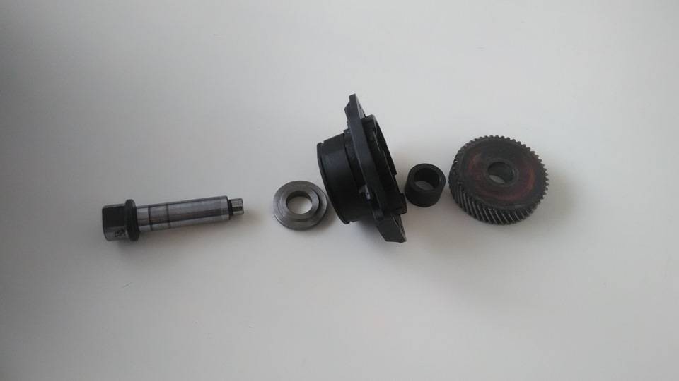Вышеуказанные номенклатуры купил новые и поменял. Для замены подшипника в сборе с корпусом и шпинделя с помощью съемника разбираем узел, стягивая косозубую шестерню, усилие большое.