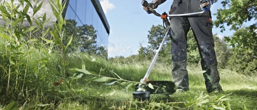 Оба типа косилок могут работать от бытовой сети 220 вольт. Однако элитные изделия создаются с питанием от встроенного переносного аккумулятора. Чаще всего они применяются на легких моделях, как показано на фото выше.
