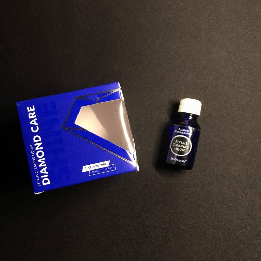 Отдельно хочется упомянуть про уход за иглой звукоснимателя, одним из самых важных элементов проигрывателя. Именно она зачастую может являться причиной загрязнения дорожек и ухудшения звучания пластинки, а все потому что она также требует специального ухода. Для этого можно купить специальный раствор. Выглядит примерно как баночка с лаком для ногтей и содержит примерно такую же кисточку. Я купили себе вот такой: