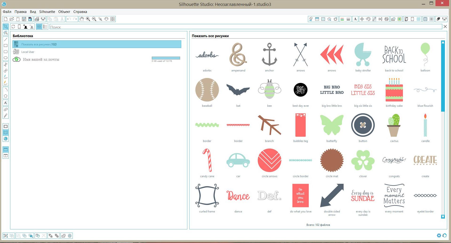 Заходим в программу Silhouette Studio и открываем библиотеку