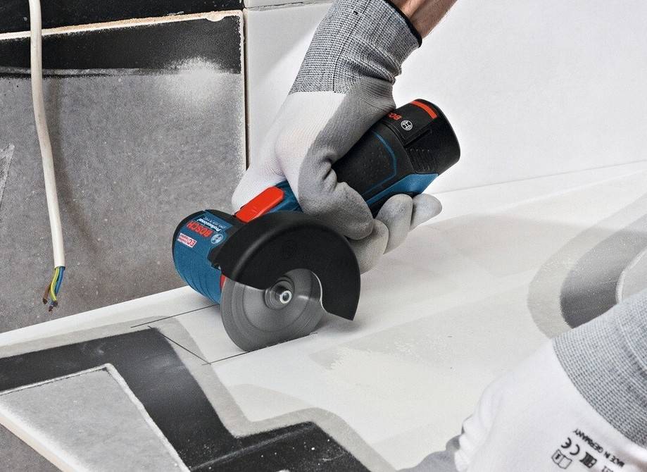 Чтобы выполнить разрез, для болгарки применяют самый миниатюрный диск. Потребуется прикладывать усилия для использования инструмента. Дополнительно образуется много мусора.