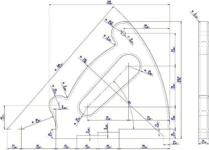 Она необходима для точного реза материала разной ширины, поэтому эта линейка (упор) обязана уметь перемещаться параллельно режущей кромке. Такой элемент также изготавливают из стального уголка. В столешнице делают прорези, в которых крепят концы направляющей с помощью винтов.