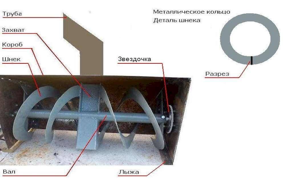 Основными составляющими самодельного роторного снегоуборщика своими руками являются: