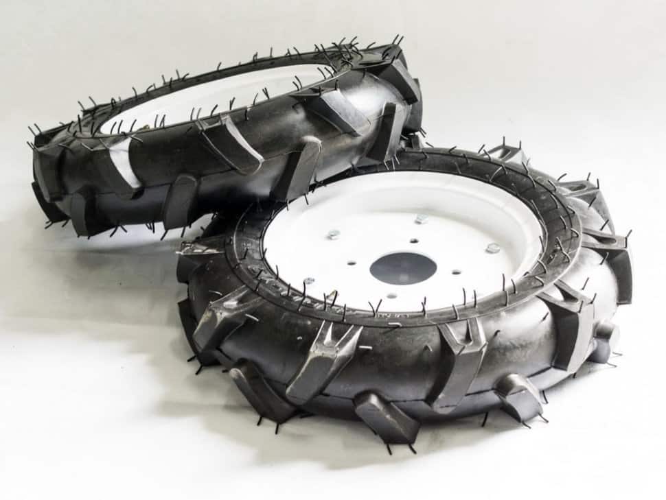 Металлические колеса или грунтозацепы используют тогда, когда появляется необходимость увеличить тяговое усилие. Они тоже поставляются в продажу нескольких видов: