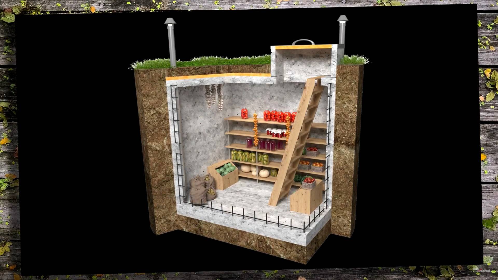 Также оборудуются настенные полки. В так называемую погребницу (находящуюся над землей часть строения) входят дверь, ведущий вниз люк, крыша, стены и тамбурный отсек.