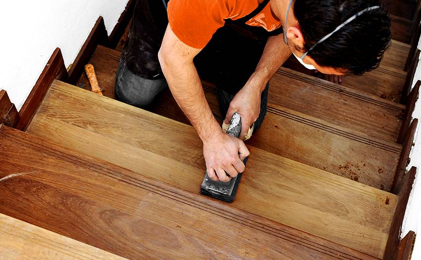 Места с затрудненным доступом (под лестницами, батареями, в углах) придется отшлифовать ручным способом
