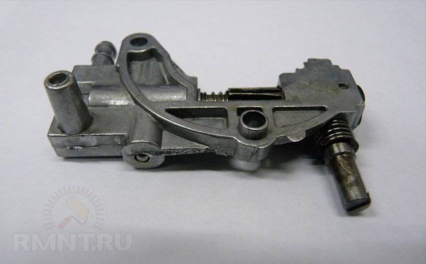 - Некоторые модели приводов масляных насосов имеют спецпружину. Она передает вращение от звездочки на привод маслонасоса. Очень важным является правильная установка этой пружины при осуществлении сборки устройства. При неправильном монтаже маслонасос прекращает подачу масла для смазывания цепи. Что может привести к дорогостоящему ремонту.