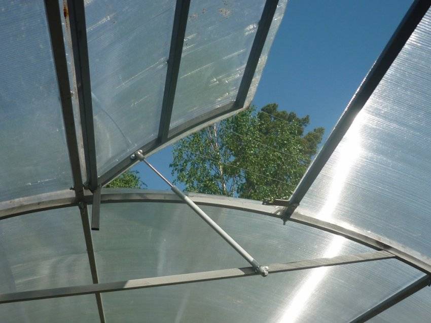Как уже упоминалось, в такой конструкции не предусмотрены открывающиеся дверцы, поэтому для того, чтобы осуществлять уход за растениями, понадобится полностью поднимать и убирать каркас. Но для того чтобы добавить комфортности, можно добавить небольшие форточки для проветривания, учтя их в чертеже парника из поликарбоната своими руками. Фото таких парников можно увидеть в сети интернет или на специализированных сайтах.