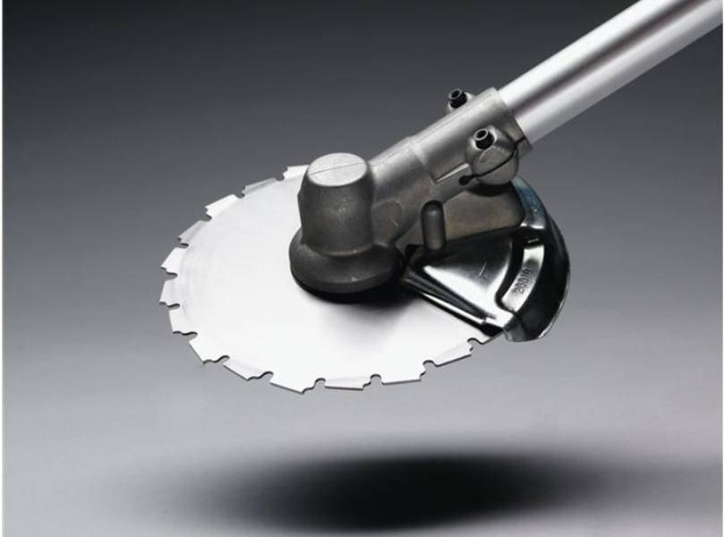 - Для более грубой травы и зарослей можно применить один из металлических ножей, которые различаются между собой количеством режущих зубьев.