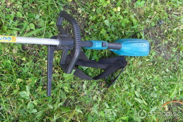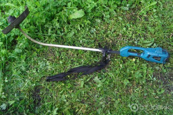 - Установка режущего элемента (в качестве которого может выступать нож или катушка с леской) и плечевого ремня.