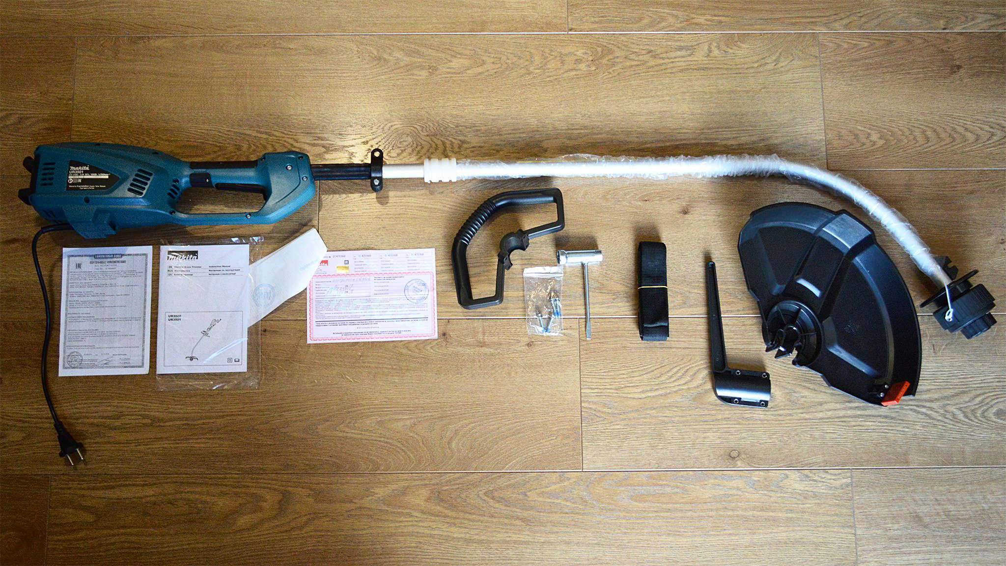 Бензокосилка Макита комплектуется пластиковым кожухом, сумкой для инструментов, режущим ножом, а также косильной головкой с леской, толщиной 2 мм.