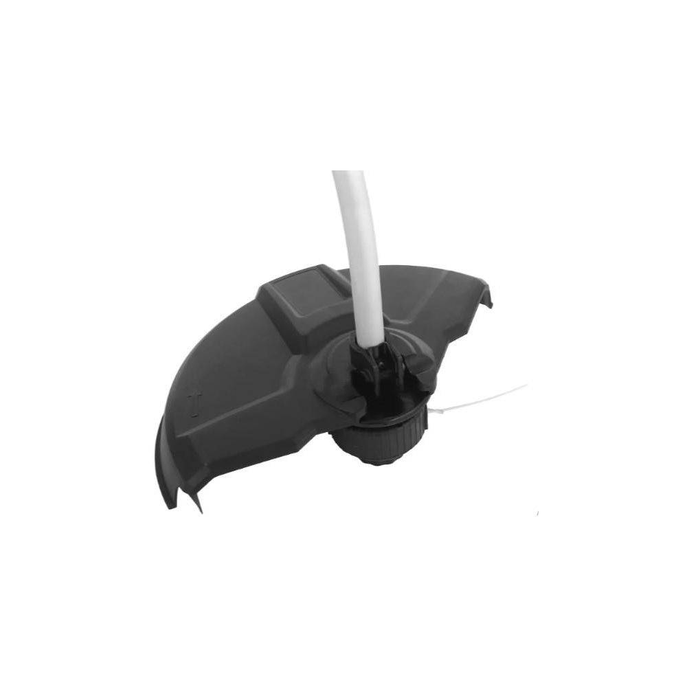 Длина кабеля для подсоединения к удлиняющему шнуру 35 см. Рабочий орган — автоматическая косильная головка с леской (2 мм толщиной). Ширина захвата 35 см. Рукоятка прорезиненная петлеобразная. Есть защитный кожух и плечевой ремень.