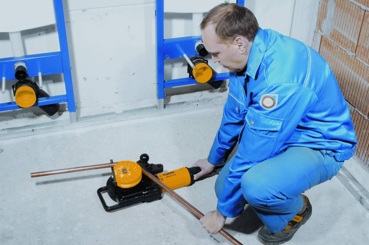 Трубогибы состоят из станины, нескольких роликов, ограничителей и привода. Управление прибором осуществляется вручную, электромотором и гидравлическими цилиндрами. В частном строительстве используются профильные трубы с высотой стенки до 20 мм. С их сгибанием справляется ручной трубогиб.