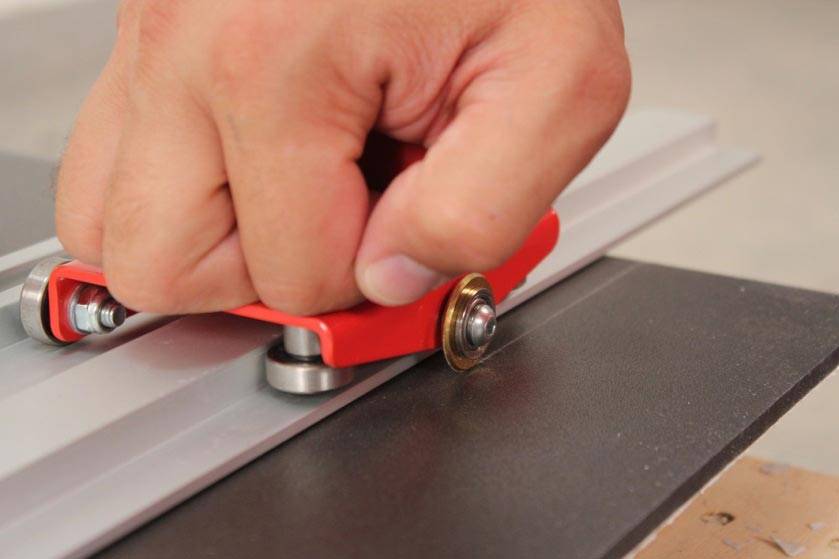 С тонкой плиткой толщиной в пределах 4 – 6 мм этот инструмент справится. Лучше выбирать разновидность с алмазным роликом. Прорезав борозду, модуль укладывают на край стола и разламывают.