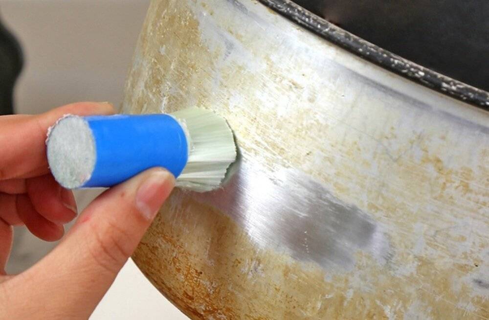 Оставить металлические изделия в растворе из лимонной кислоты на 8–12 часов. Размягченный налет снимают зубной щеткой или мочалкой.