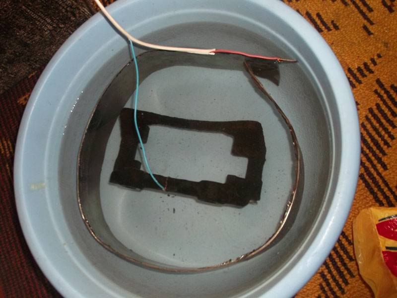 - Конец второго провода закрепляется на очищаемом предмете. Чтобы ток проходил эффективно, его зачищают от изоляции.