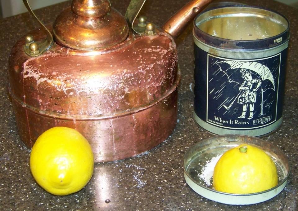 Чистят поржавевшие изделия и картофельной кашицей, в которую добавляют перемолотый лимон и 1–2 ложки крупнозернистой соли. Массу наносят на поврежденные участки, оставляют на 15 минут, затем втирают зубной щеткой и смывают остатки влажной тряпкой.