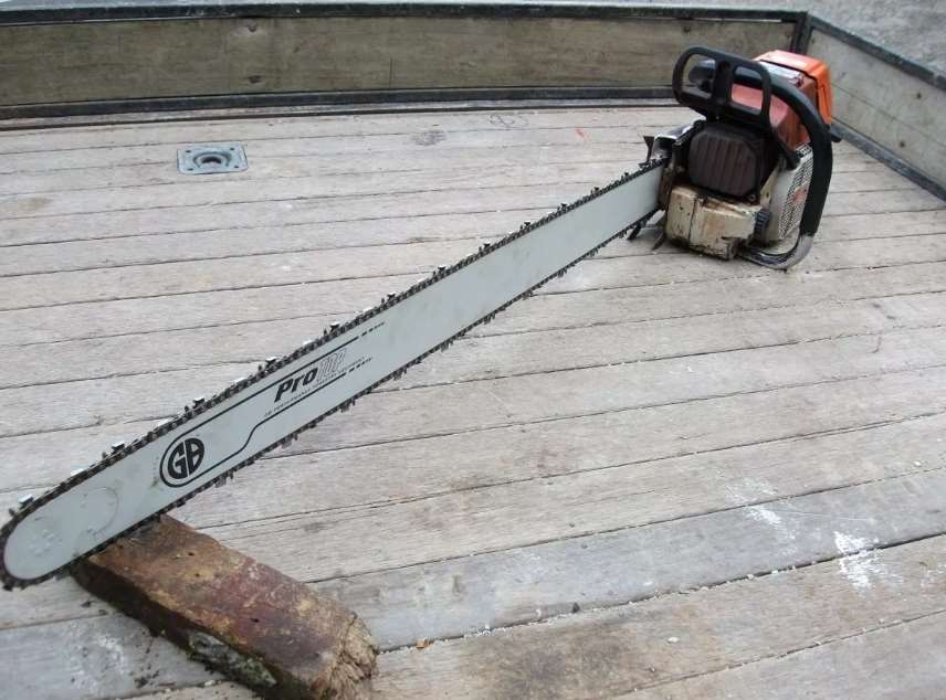 Чтобы определить наибольшую длину свободного пропила необходимо вычесть 50 мм из заявленного размера направляющей. Например, шина на бензопилу Штиль в 45 см показывает, что такая пила может за один подход спилить ствол диаметром 40 см.