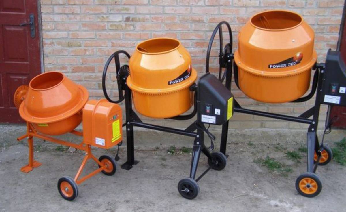 Мощные агрегаты чаще всего оборудуются трехфазными двигателями. Они подходят для заготовки больших масс растворов и запитываются от дизельных генераторов. Для бытовых нужд можно использовать бетономешалки всего на 220 Вт. Такая мощность позволяет подключать эти устройства к обычной бытовой электросети.