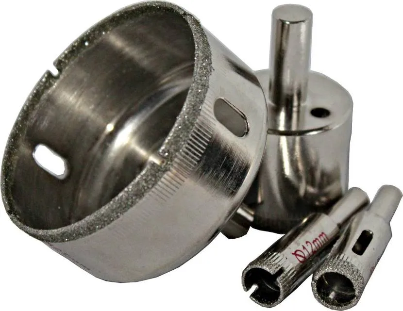 - Трубчатые коронки по стеклу, изготавливаемые с алмазным напылением на режущей части, также нуждаются в качественном охлаждении. Если вы не знаете, как вырезать в стекле отверстие большого диаметра, такое трубчатое сверло поможет вам решить проблему.