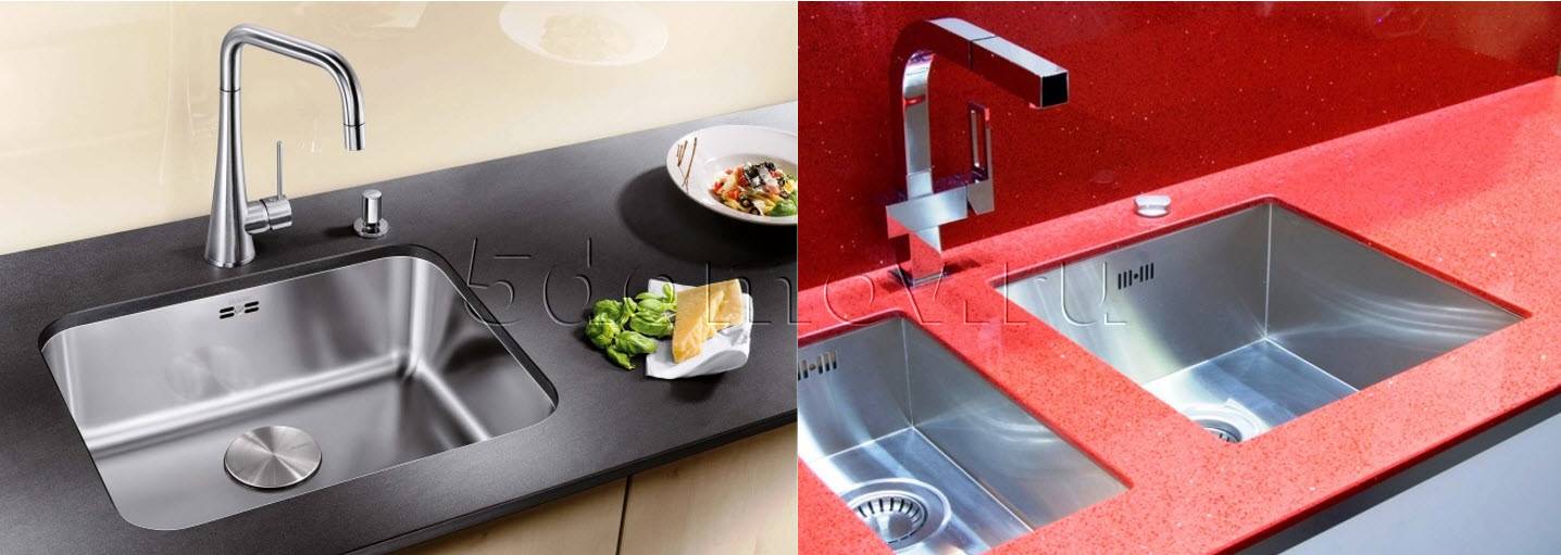 При покупке мебели для кухни с таковой поверхностью лучше иметь уже готовое изделие, которое востребует только подключения к системе водоснабжения и канализации.