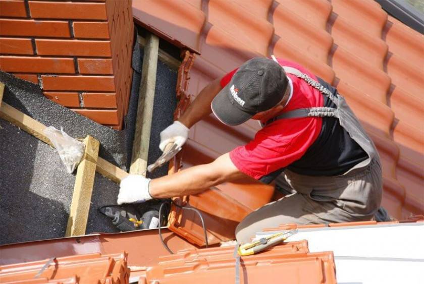 При использовании гибкой разделки из силикона или резины в колпаке вырезают отверстие на 1/5 меньше его диаметра. Колпак натягивают на трубу и придают гибкому фартуку форму листа. Закрепляют на саморезы, предварительно промазав герметиком. Для более прочного крепления иногда необходимо бывает усилить обрешетку крыши – это делается на этапе выпиливания отверстия в ней.
