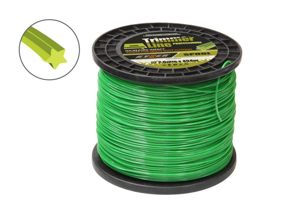 - Фигурный. Сечение затейливое, ребристое. Выглядит как звездочка или витой квадрат с выемками, в общем – сложная геометрическая фигура. Это специализированный корд. К каждому прилагается инструкция, что именно он срезает. Например, звездочка – идеально стрижет газонную траву. Она хоть и стоит немного дороже, но режет аккуратно, кончики травяного покрова выглядят привлекательно и не сохнут послу среза.