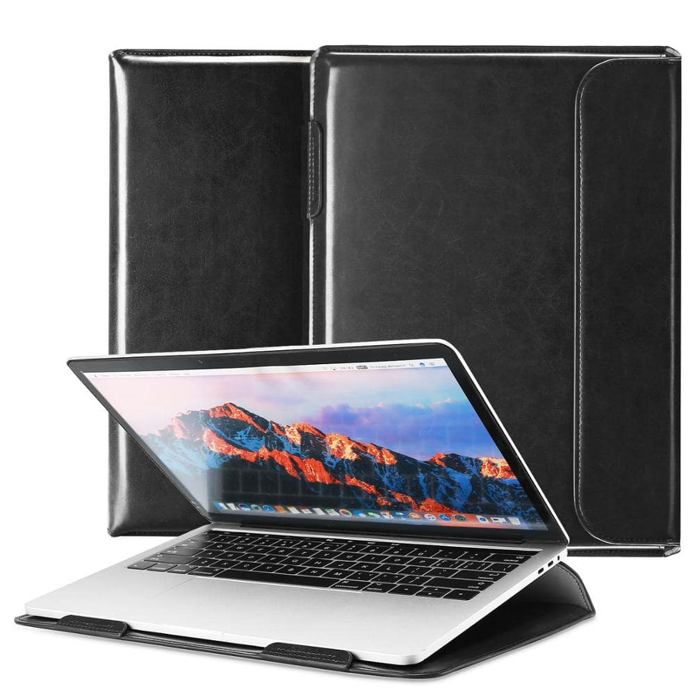 Походят на папки для бумаг. Во время работы ноутбук остается в чехле, который понадобится только расстегнуть и раскрыть. Встречаются текстильные и кожаные модели.