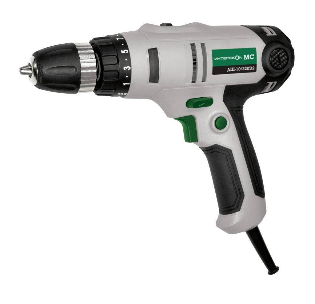 - Интерскол ДШ-10/260Э2. Это недорогой маленький сетевой шуруповерт российского производства (в обиходе «Шурик») мощностью всего 260 Вт. Вес инструмента составляет 1,4 кг, он имеет две скорости и снабжен быстрозажимным патроном. Регулируемый момент кручения в пределе 25 Н/м. Безударный шуруповерт-дрель.