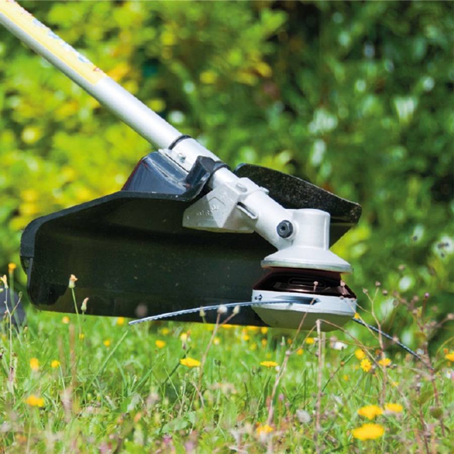 Модель может работать от аккумулятора. Высота ручки регулируется. Форма рукоятки – D-образная. Из особенностей: головка с настройкой положения в пределах 90 градусов, телескопическая штанга. В комплект входит: 2-х мм леска, аккумулятор Li-Ion 3 Ач, зарядное устройство.