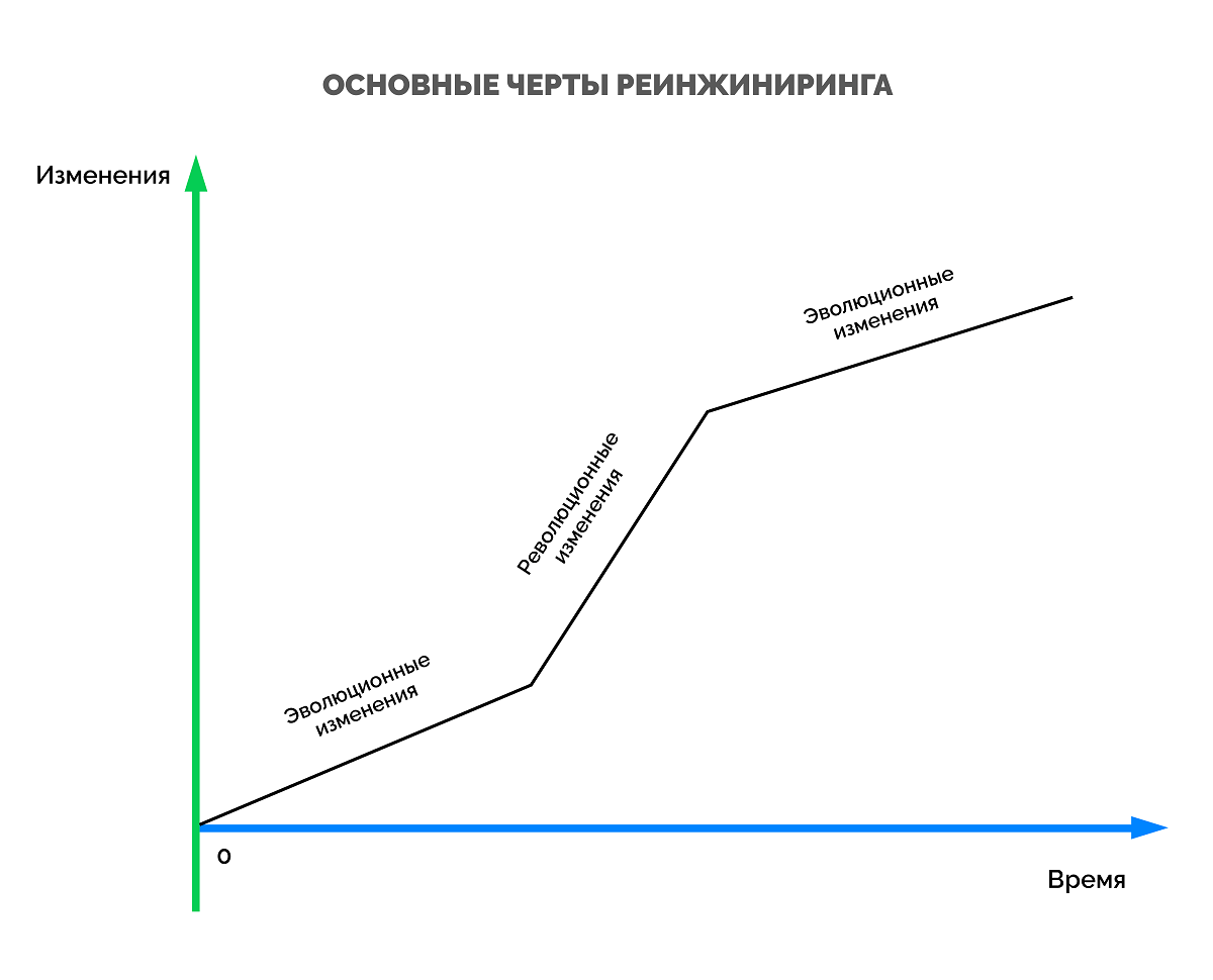 Реинжиниринг – управленческий метод, который позволяет исправлять проблемы по мере их возникновения. Одновременно можно реинжинирить до 20% от общего числа бизнес-процессов на предприятии.