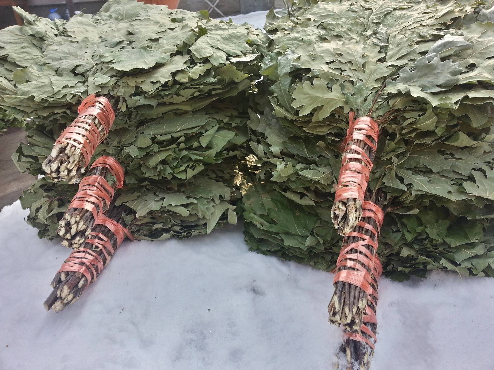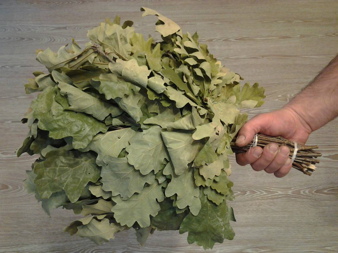 Дубовые веники заготавливают от середины июня до августа, соблюдая те же условия сбора, что и для березы. Они обладают дубильными свойствами и подсушивают жирную кожу, склонную к обильному потоотделению.