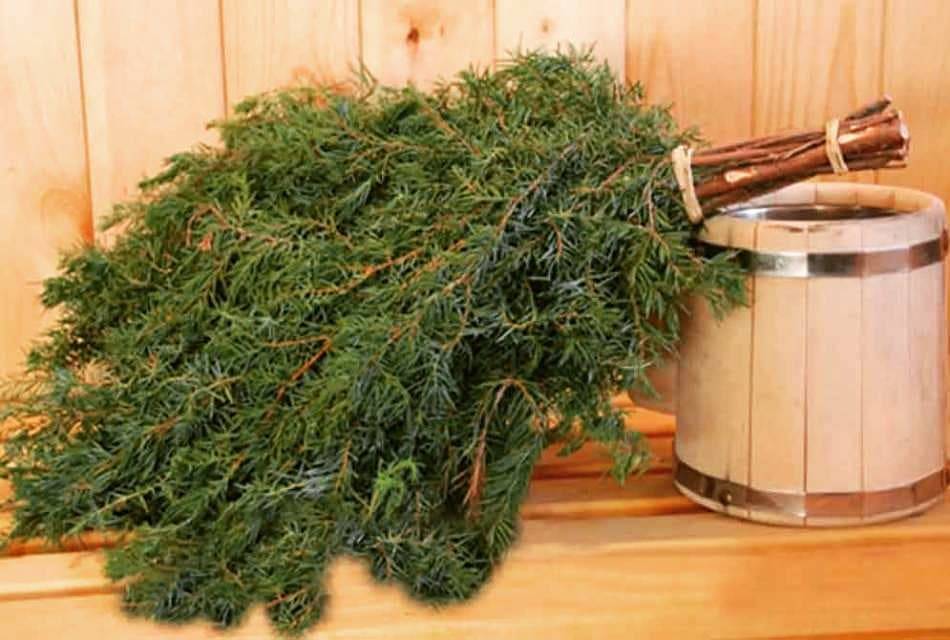 Запарить можжевеловый веник для бани нужно в горячей воде и выдержать не меньше 15 минут