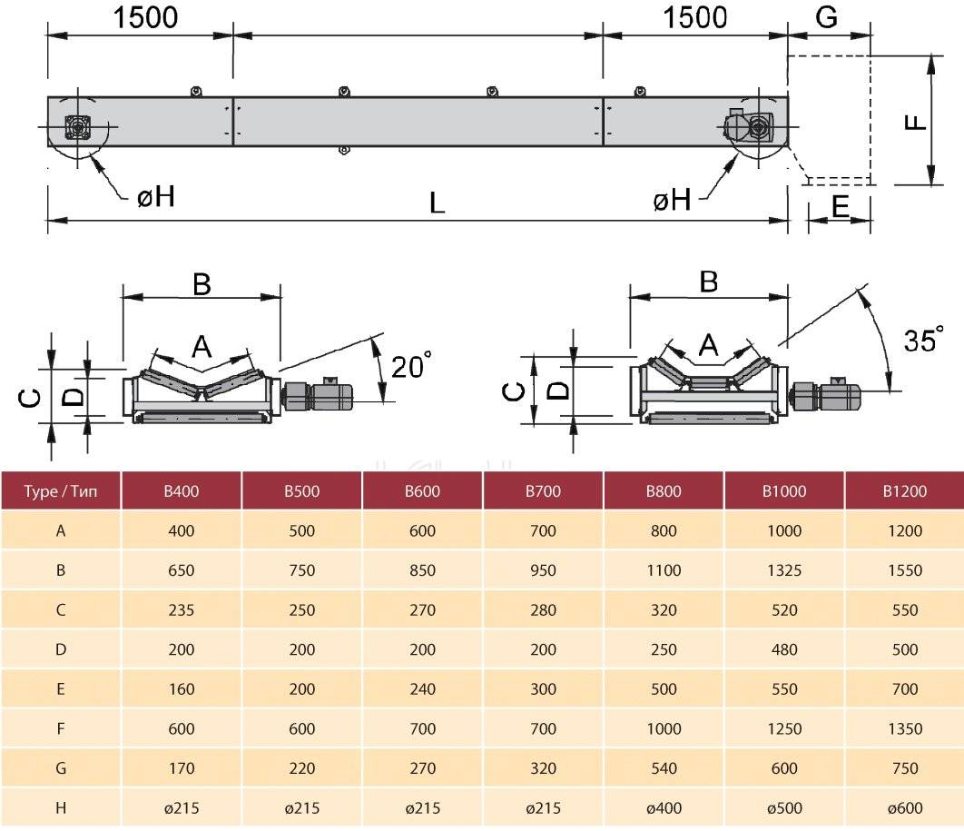 - Ленточный конвейер нельзя нагружать более 750 кг/м3.