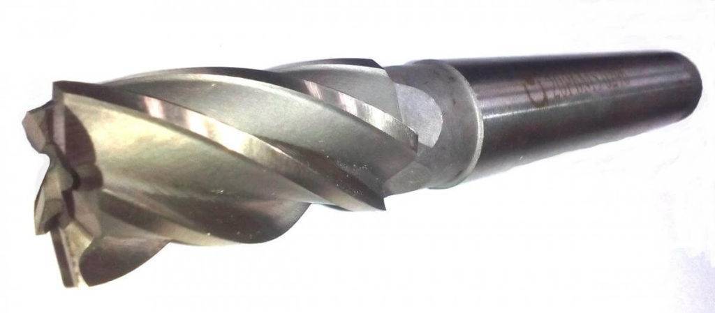 Действия могут происходить с главной режущей кромкой, которая расположена с боку фрезы или со вспомогательной торцовой частью. По этим сторонам находятся зубцы. Такой конический элемент назвали по форме геометрической фигуры. Фреза похожа на конус, широкая часть которого плавно переходит в суженный конец.