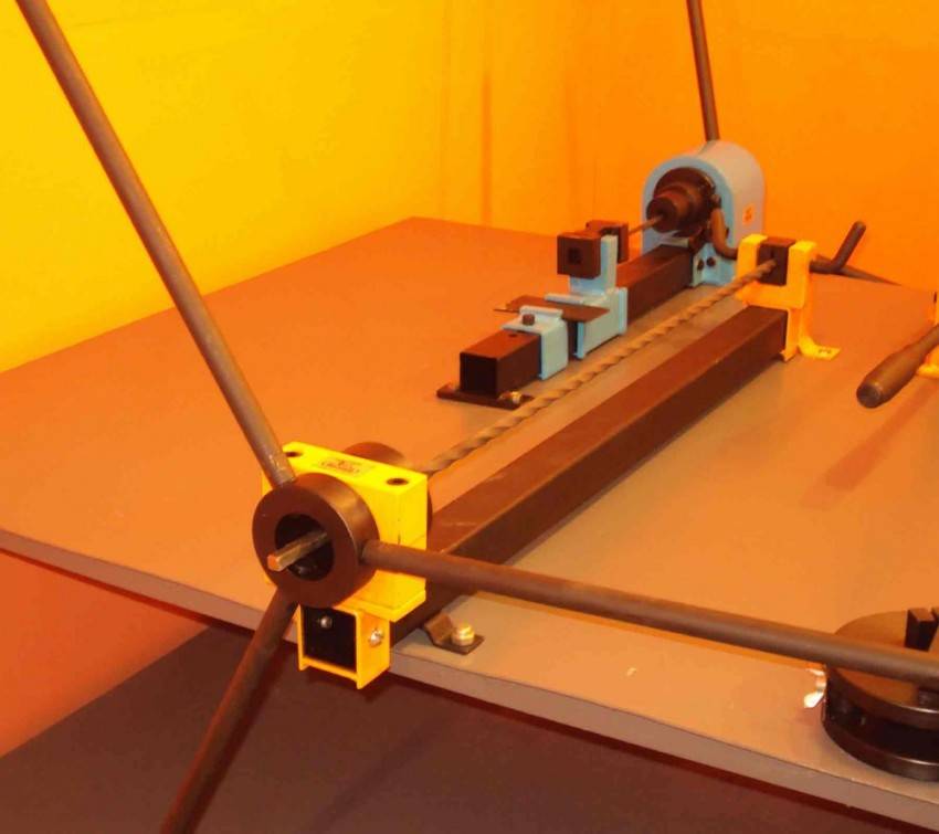 - Рукоять для проворачивания (скручивания). Чем она длинее, тем меньше нужно прилагать усилий. С другой стороны, ничто не мешает подключить к подвижному зажиму электродвигатель, чтобы не скручивать металл вручную!