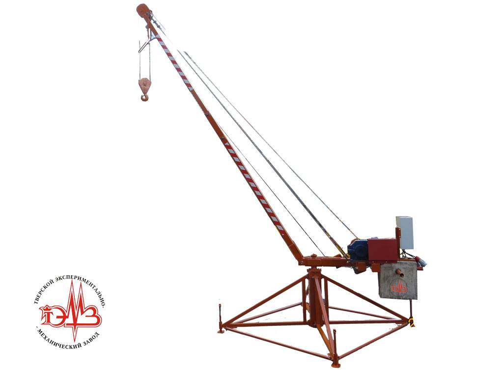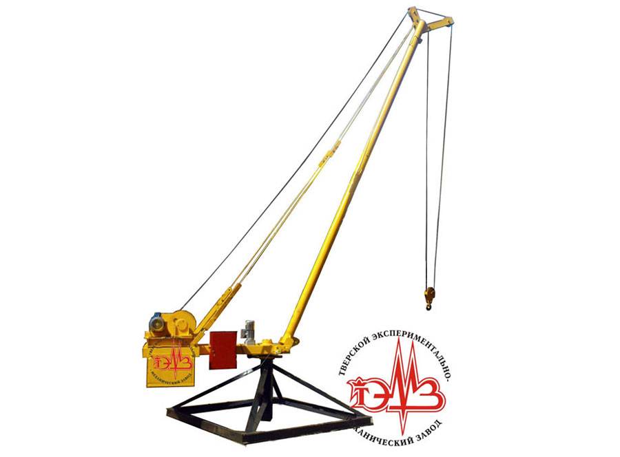 В любом случае конструкция модели включает в себя опорную раму, поворотную платформу с лебедкой, стрелу и специальную стяжку для нее, автоматику, двигатель, трос, контргруз, крюк для сцепки груза. В зависимости от того, на какую высоту нужно поднять груз, спецтехника может устанавливаться либо на крыше/перекрытии, либо на земле.