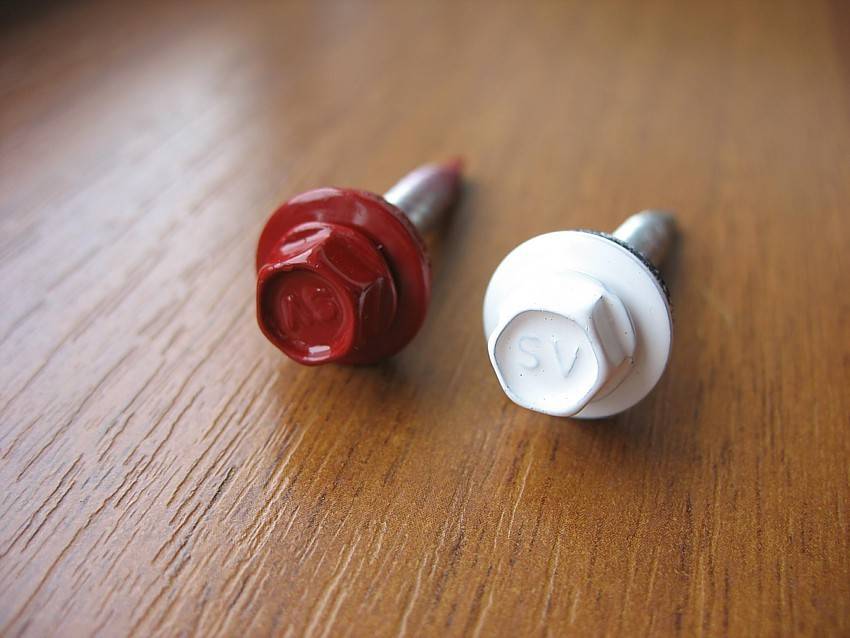 На головке самореза обязательно должна присутствовать маркировка, а толщина прокладки — не менее двух миллиметров. Она прочно приклеивается к металлической шайбе и плотно садится на стержне самореза по металлу.