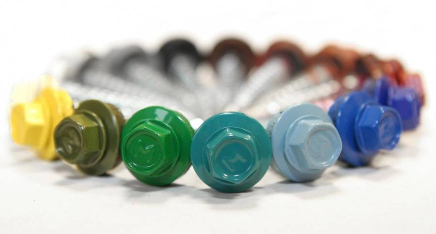 В большинстве случаев кровельные самосверлящие шурупы для кровельной черепицы из металла, прозрачного пластика или других материалов листового типа, имеющих покрытие на полимерной основе, а еще для асбоцементного листа – разноцветные. Закрепляемые листы и элементы крепежа должны как можно лучше подходить друг к другу по оттенку, благодаря этому их, в основном, выбирают по маркировке. Очень часто применяемые следующие цвета по шкале RAL это: