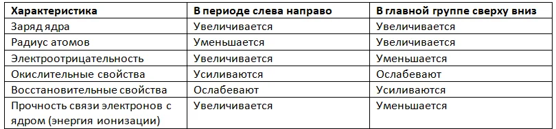 Свойства групп элементов схожи. Он закономерно изменяются в пределах групп и периодов.