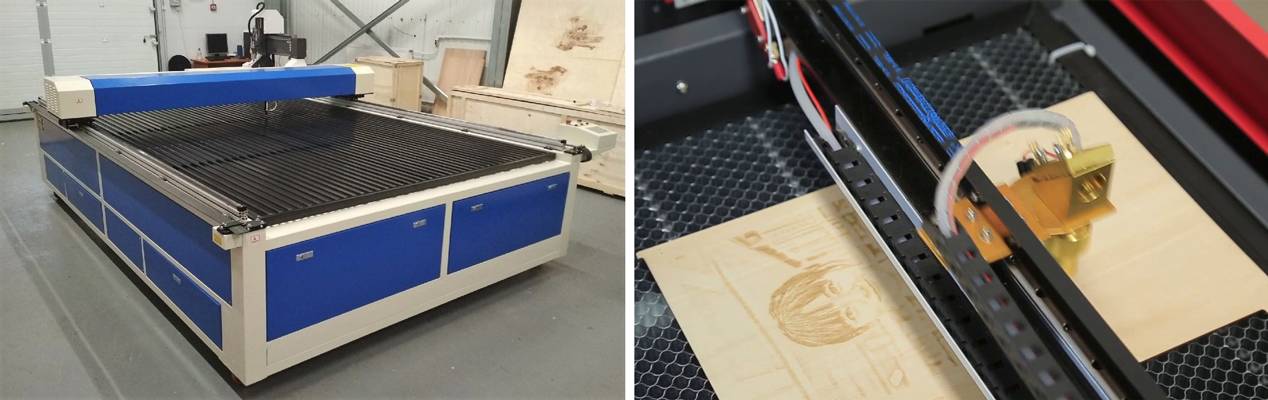 И, во-вторых, это оборудование с повышенной мощностью лазерного пучка, способного не только резать дерево, но и фрезеровать его. Они также располагают функцией гравировки, которая реализуется за счёт перенастройки лазерного луча по мощности.