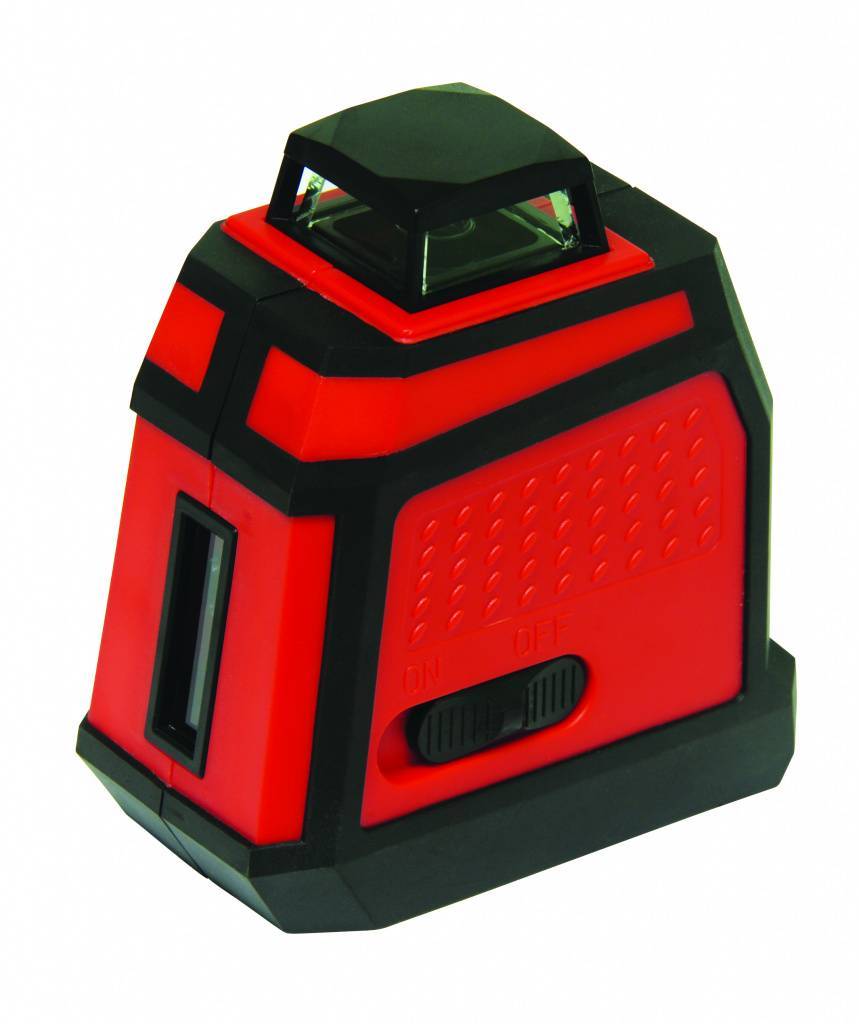 Построение горизонтали вокруг прибора обеспечивается за счет вращения лазерной головки. Вторая линия простраивает вертикаль и мы получим плоскость в 360 градусов. Предусмотрен механизм самовыравнивания в пределах четырех градусов.