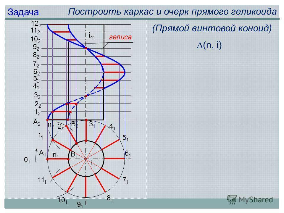 | Коноид | 2 направляющие: · откровенная | 1. Особенный случай цилиндроида. 2. Прямой коноид имеет направляющую прямолинейную, расположеную под прямым углом к области параллелизма. | Гидротехническое строительство, на конструкторском уровне опор мостов |