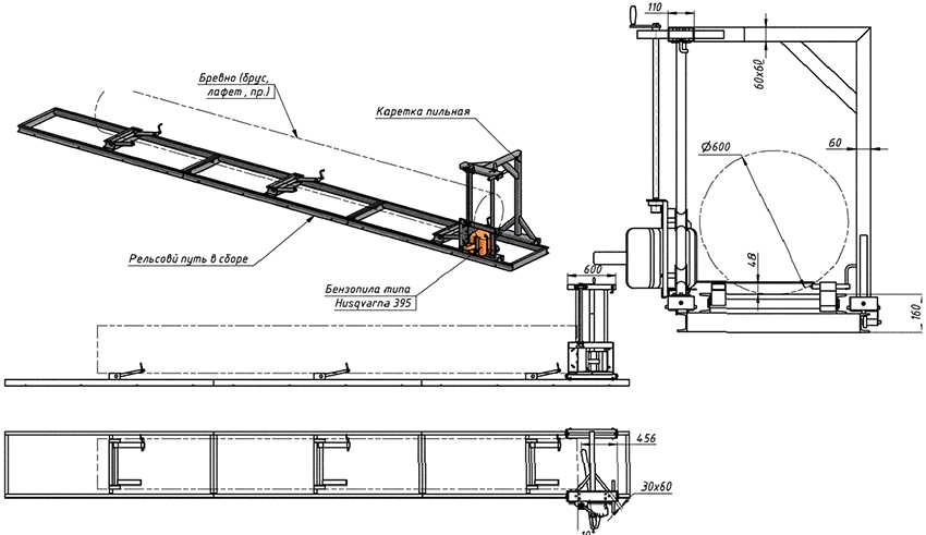 Схема изготовления пилорамы из бензопилы своими руками.