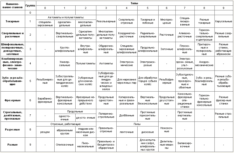 - первая цифра — на группы по таблице классификации металлообрабатывающего оборудования;