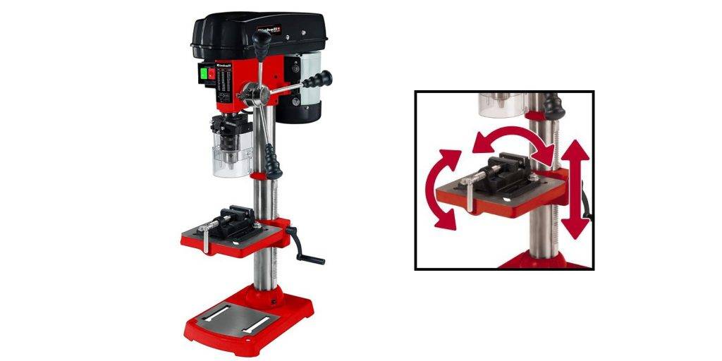 Технические возможности сверлильных станков бытового назначения позволяют обрабатывать детали, высота которых находится в интервале 200–900 мм. Данный параметр зависит от того, на какую высоту сверлильная головка может подниматься на стойке оборудования. Принцип перемещения сверлильной головки по колонне станка у различных моделей может варьироваться. На самых простых и легких устройствах рабочая головка перемещается на требуемую высоту вручную, а на более крупном и тяжелом оборудовании для этого предусмотрена специальная рукоятка-штурвал, которая соединена с приводным механизмом.