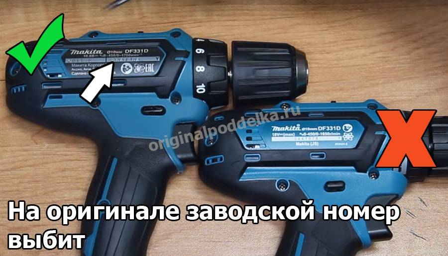 - Японский производитель на оригинальных инструментах указан как корпорация Makita Anji, Aichi, сделанная в P.R.C. В подделках последний надпись отсутствует или имеет различные буквы. Китай, Малайзия.