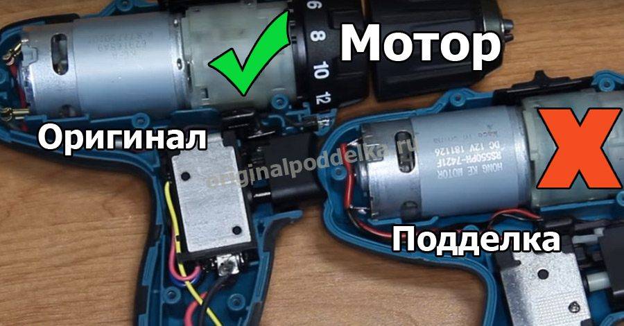 По внешнему осмотру корпуса инструмента можно легко отличить подделку от оригинала. У подделки цвет корпуса статора более синий, тогда как у оригинала он более зеленый.